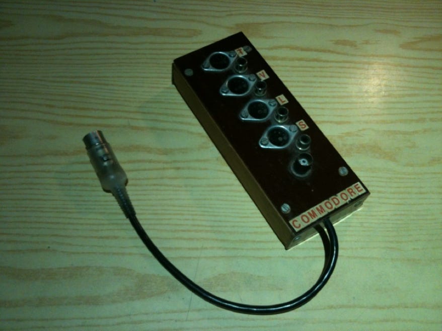 Dobra nasza. O to chodziło. Reszta była już tylko czystą formalnością. Okazało się, że sygnał wejściowy można było, zgodnie z moimi oczekiwaniami, przepuszczać przez filtry Commodorka co dawało różne możliwości. Razem z moim ojcem (nauczycielem fizyki, o czym można poczytać w innym artykule) skonstruowaliśmy specjalne złącze umożliwiające jednoczesne podłączenie do C64 następujących rzeczy: źródło sygnału audio zewnętrznego, monitor telewizyjny, wzmacniacza z kolumnami, monitora monochromatycznego, oscyloskopu do prezentacji sygnału akustycznego przez złącze BNC.